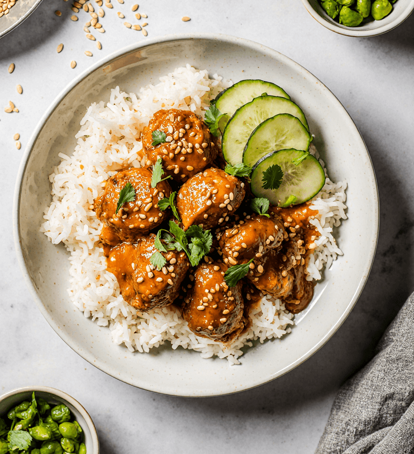 The Fresh Vegetables: This is where you can really make the recipe your own. I love using shredded red cabbage, julienned carrots, sliced cucumbers, and edamame. The combination provides a variety of textures—crunchy, crisp, and tender—plus an array of colors that makes the bowls visually stunning. The fresh vegetables also provide a cooling contrast to the rich, saucy chicken.