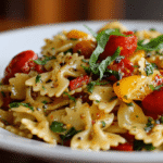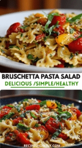This bruschetta pasta dinner recipe is proof that the most extraordinary meals are often the simplest ones. It asks nothing of you except quality ingredients and a little patience to let the flavors marinate. When those golden farfalle, jewel-like tomatoes, and fragrant basil come together in the bowl — just like the beautiful, overflowing plates in the recipe photos — something genuinely magical happens.