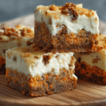 What immediately struck me when I first made these was how the cream cheese layer doesn’t just sit on top—it bakes into the bars, creating this dreamy, tangy contrast to the sweet, spiced cake. When you bite into one, you get a little bit of everything: the moist, cinnamon-scented cake studded with carrots, the creamy cheesecake layer, and if you’re feeling fancy (which I highly recommend), a sprinkle of toasted walnuts on top.