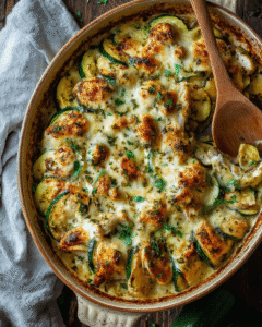 I’ll never forget the summer evening when this chicken zucchini bake first came together in my kitchen. My garden was overflowing with zucchini—as every gardener knows happens every August—and I was desperately searching for new ways to use them. I had some chicken breasts that needed cooking, a block of cheese in the fridge, and a craving for something comforting but not heavy. I started layering ingredients in a baking dish almost instinctively, and what emerged from the oven was absolute perfection. The zucchini had softened into tender, flavorful slices, the chicken was juicy and perfectly seasoned, and that golden, bubbling cheese on top was irresistible. My family devoured it, and it’s been a regular in our dinner rotation ever since.