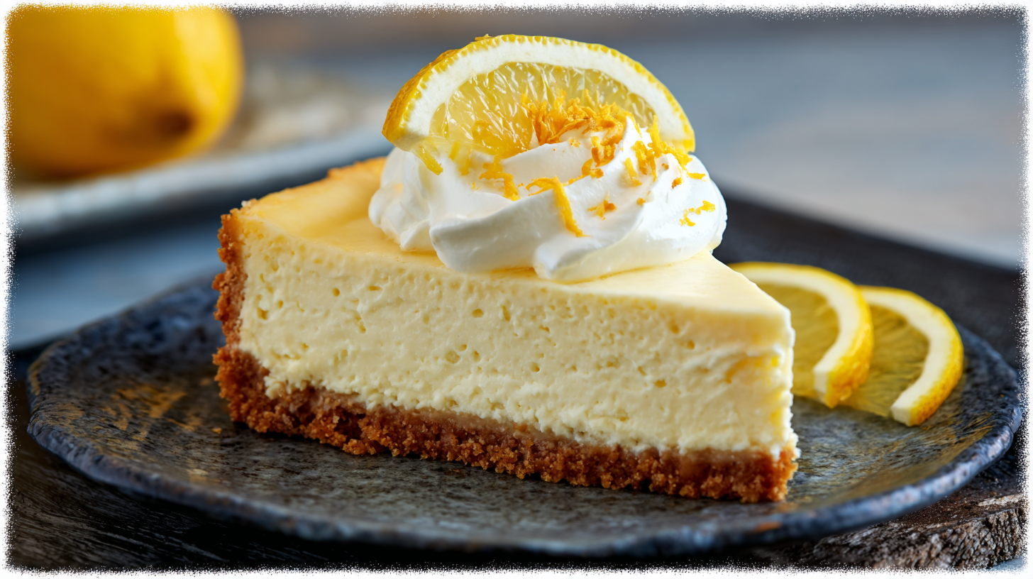 If you love lemon desserts, this recipe is your new best friend. It is an easy lemon dessert in the truest sense — straightforward to make, with ingredients you can find anywhere, and results that look and taste completely professional. The filling is silky, dense, and rich, with a bright lemon flavor that cuts through the creaminess beautifully. The graham cracker crust adds a sweet, buttery crunch. And if you top it with homemade lemon curd and a swirl of fresh whipped cream — like the one you can see in the images, garnished with a slice of lemon and a curl of orange zest — it becomes a genuinely show-stopping centerpiece.