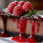 I’ll never forget the first time I made this Easy Cherry Dark Chocolate Raspberry Cheesecake for my sister’s birthday dinner. She’s always been a chocolate and raspberry fanatic, and I wanted to create something truly special that would make her eyes light up. When I placed this stunning cheesecake on the table—with its rich dark chocolate filling, vibrant raspberry sauce dripping down the sides, and a crown of fresh raspberries glistening on top—the entire room went silent. Then came the first bite, and I knew I’d created something magical. The combination of silky chocolate cheesecake, tart raspberries, and a crunchy chocolate cookie crust was absolute perfection.