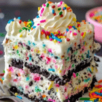 An icebox cake is a brilliant concept: layers of cookies and cream that meld together as they chill, creating a cake-like texture without ever touching an oven. This funfetti Oreo version takes that classic idea and turns it into a celebration-worthy dessert that’s as fun to make as it is to eat.