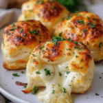 Looking at these garlic butter cheese bombs fresh from the oven, you’ll notice how the tops are perfectly golden and glistening with herb-flecked butter. The biscuits puff up beautifully, and as you break one open, the mozzarella creates those gorgeous, Instagram-worthy cheese pulls that stretch on and on. Little flecks of fresh parsley dot the tops, adding both color and a subtle freshness that balances the richness of the butter and cheese.