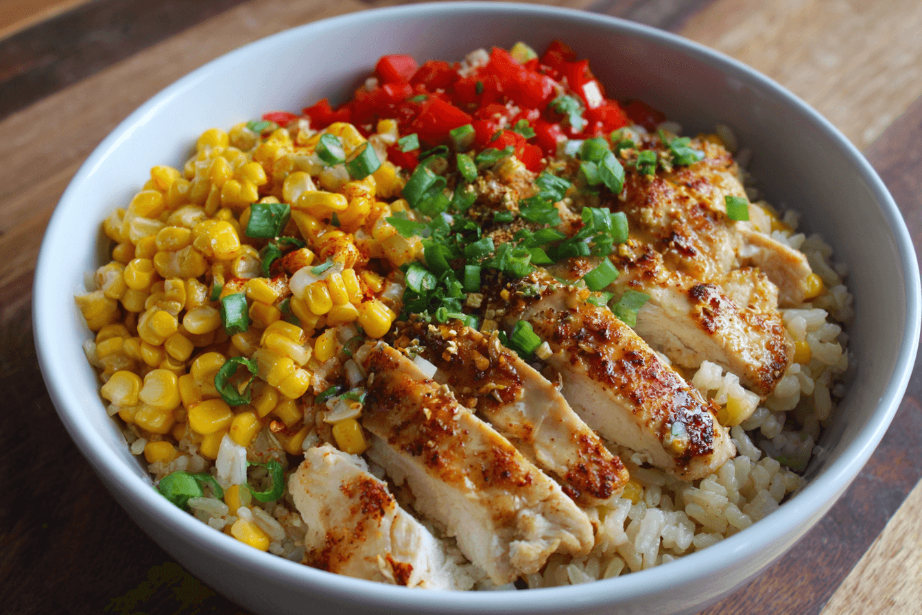 High-Protein Street Corn Chicken Rice Bowl: Mexican-Inspired Weeknight Wonder