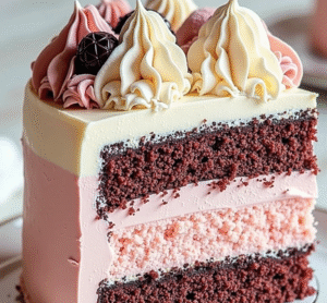 The first time I attempted a Neapolitan cake, I’ll admit I was intimidated by the thought of making three separate cake layers. But once I realized I could make one basic batter and simply divide and flavor it differently, everything clicked. The result was so impressive that my sister asked me to make it for her birthday party, where it became the talk of the evening. Guests couldn’t stop photographing the beautiful layers when sliced, with the rich chocolate brown, delicate pink strawberry, and classic vanilla creating a perfect harmony of colors and flavors.
