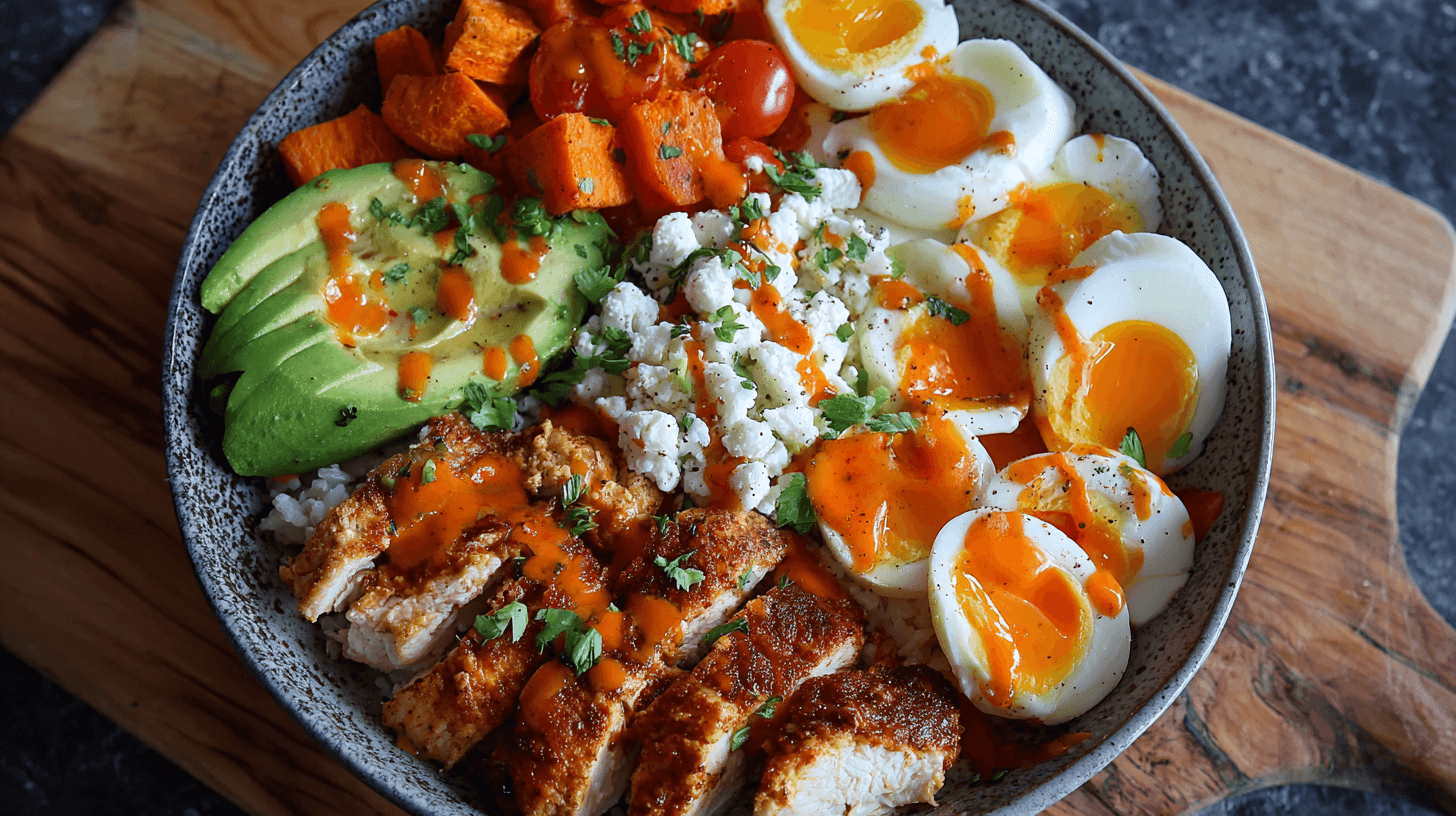 Protein-Bowl Buffalo Chicken with Eggs and Sweet Potatoes: Ultimate High-Protein Power Bowl