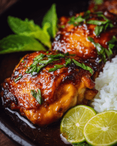 Transfer the glazed chicken to a serving platter, spooning any remaining sauce from the pan over the top. Immediately sprinkle with sesame seeds—they’ll stick beautifully to the tacky glaze. Garnish generously with fresh cilantro and sliced green onions. Place lime wedges around the platter for squeezing over individual portions. The presentation should look vibrant and inviting, with that gorgeous amber glaze glistening under your kitchen lights.